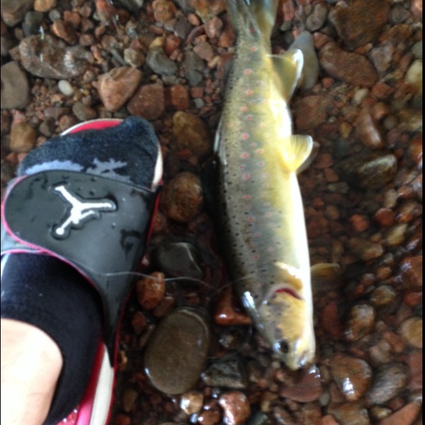 Ya it's a brown but u can understand where you are getting brook from, the long slender streamline body and red dots make it look like a brook but that is most ...more likely a brown trout. Nice catch