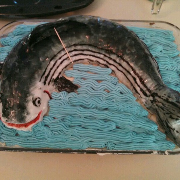 1. I made this cake for my mom on her birthday. The fish is made out of rice crispy treat and marshmallow fondant painted with food coloring safe to eat. Just don't ...more think of it as a real fish when you are cutting into it lol!
