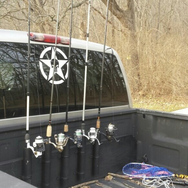 just wanted to share a pic of my new rod holder my wife made.....cleans up the back of the truck and looks sweet.