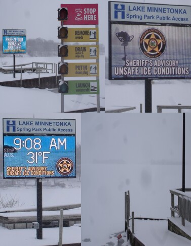 More than a month ago I said "About 4 weeks until official ICE OUT on Lake Minnetonka". As you can see I was very WRONG! This is what it looks like TODAY ...more April 3rd 2018. Maybe another 4 weeks until ICE OUT. In 2017 I had my boat in the water and was catching fish on March 28th. I guess that's what they mean by "Climate Change".