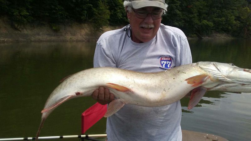 1. 8/3/18 47in trolling, yellow & brown s m custom musky lure, 9in akron oh 330 704 1309