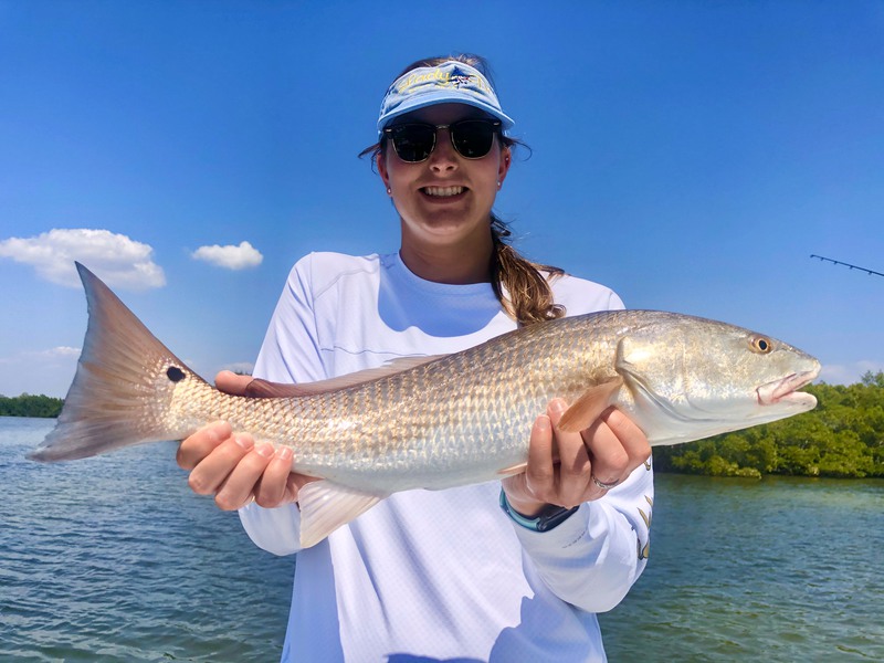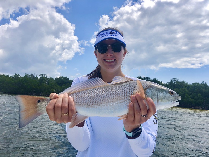 Francis with one of several Redfish from today’s trip. She had the inshore slam two days in a row. Snook , redfish and trout.