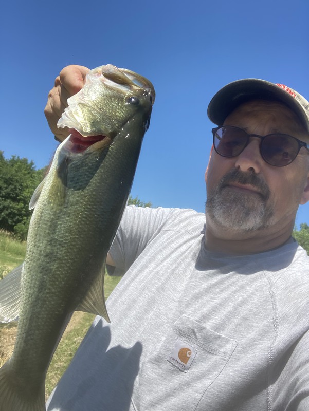 Took Grandson to the pond. Caught Bass and Blugills. Very HOT but good day!
