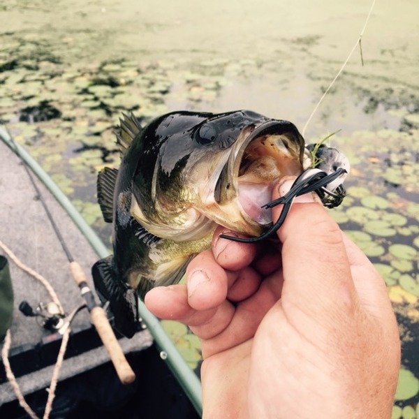 My line broke so I was hand fishing my frog back in when this lil guy blasted it the braid cut my hand
