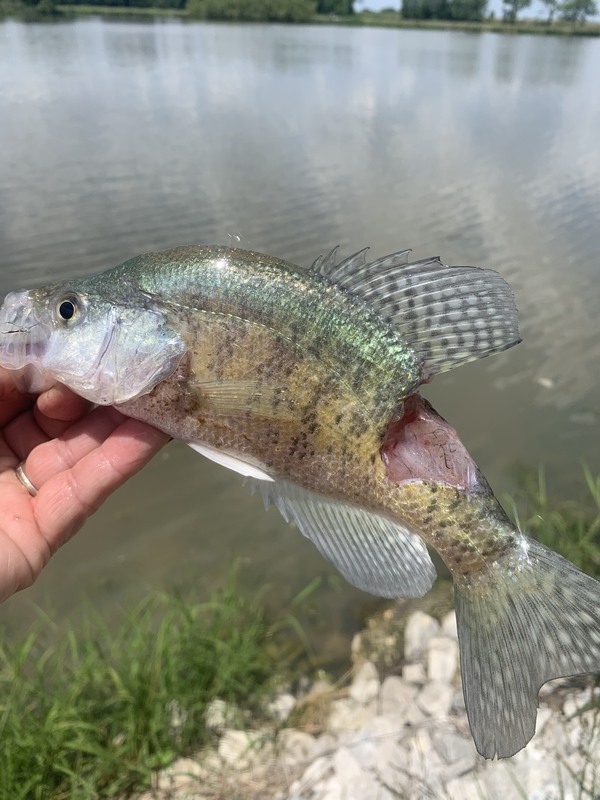Caught so many my wrist hurt. Saved enough for a meal but had to let this guy go! He survived that chomp!!!! Yep, I felt sorry for it.