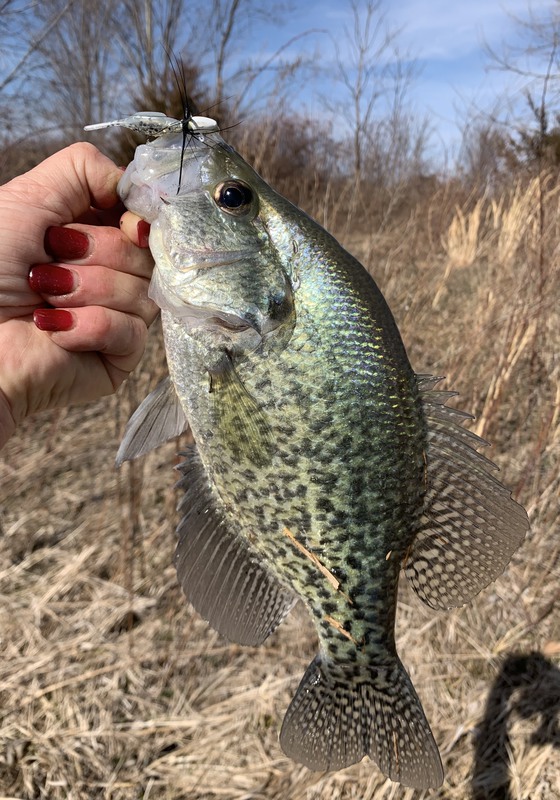 Fishing started out rough with lots of wind and by late afternoon the crappie turned on. Caught Some on yellow jig, rooster tails but mostly orange Beetle spin. ...more I love this time of year!