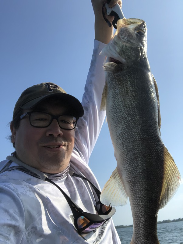 This walleye surprised me, while I was fishing for bass. I was lucky that he didn’t bite me off. Wish I had a live well (though these big eyes aren’t as tasty as ...more the smaller ones). Released quickly, and it swam away fine after a little tail winding.