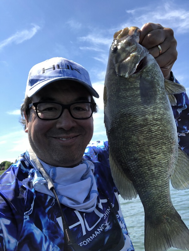 Biggest of 18 fish caught. All of the smallies were in the 2-3 lb range. Action picked up when the wind created a light surface chop.