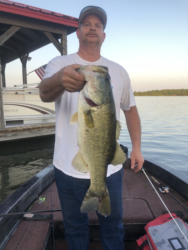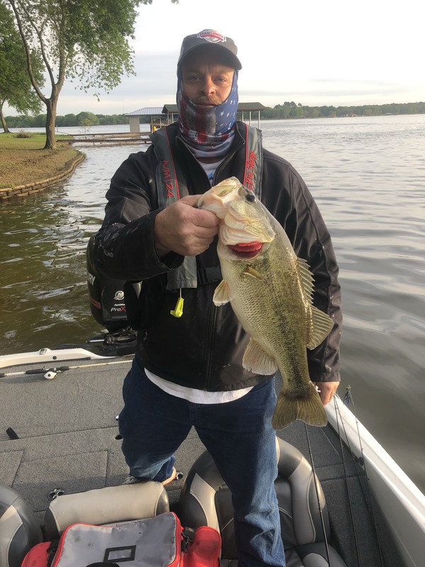 Caught on the East side of the lily pads. My buddy's son caught this one. They both live in Athens and have access to a lot of ponds and do catch some monsters. ...more I hauled my boat up from Houston so we could get on the lake and out of the house.