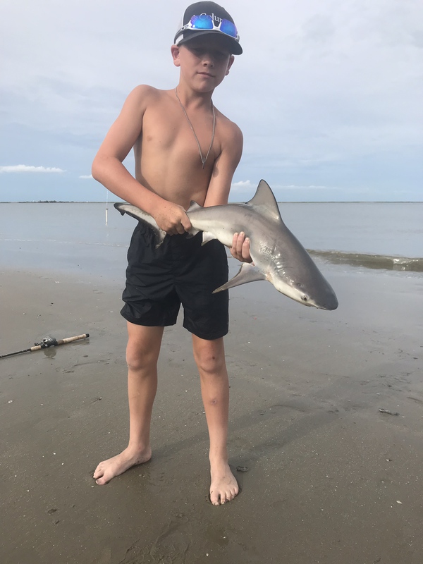 2. 12 lb. 34.0 in. black tip shark with a finger mullet