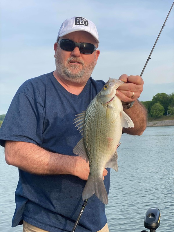 buddy holdin the fish I caught bout 10 minutes into fishin
