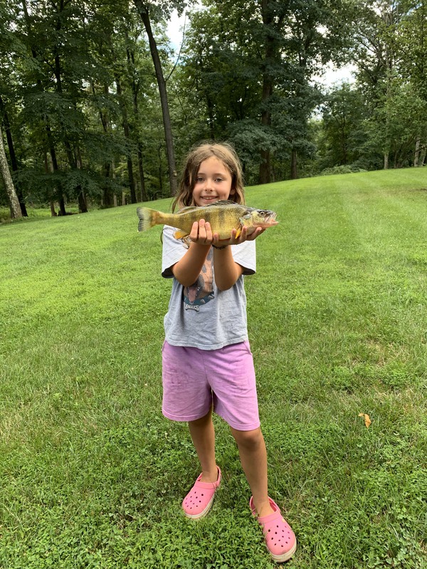 My dad caught this fat pickerel. We probably should have weighed it before we tossed it back. Now we can only guess