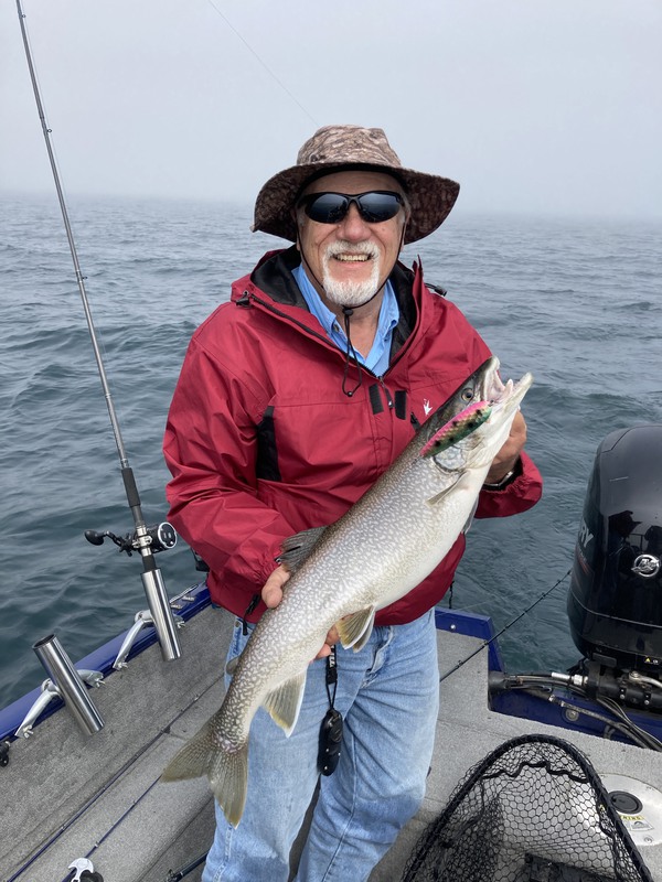 We got to go up to Lake Superior for a day of fishing. A big thunderstorm hit just as we got to the lake. Lightning and close to an inch of rain. It was supposed ...more to clear off so we went out. Had fog, wind, and 2-3 ft swells. We stuck it out and ended up with 2 bites and got both fish in. And of course the weather cleared up as it was time to leave.