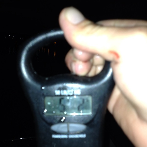 Details: Largemouth Bass with a football jig- black& blue, craw trailer