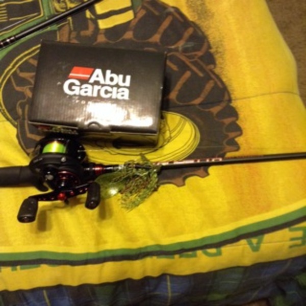 revo sx on a vendetta rod with 15 pound fluorocarbon with a H2o shallow diveing crank bait
