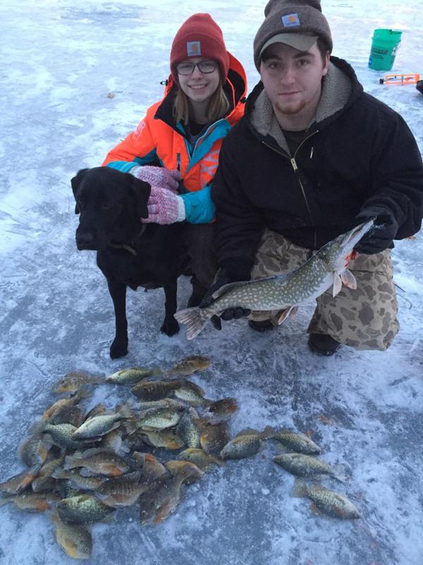 Finally after having a Stroke November 24th and getting out a limited amount of time's since, I was able to get on a decent Gill bite today and yesterday. Felt ...more good!!! Son and his gf pictured along with my Granddog "Roscoe" P Cotrain!!! Packing up, Son got this nice Northern on his jigging rod.