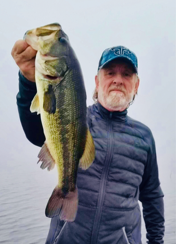 3 lb. 4 oz. 19 in. Largemouth Bass with a Caught this 3 pounder in some incredibly dense fog. My partner and I caught several this size that day...had a BLAST!