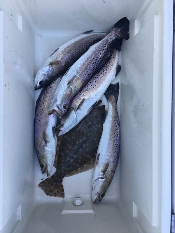 Caught five trout four flounder