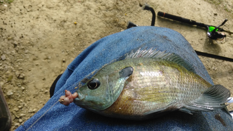 Bluegill with a worm