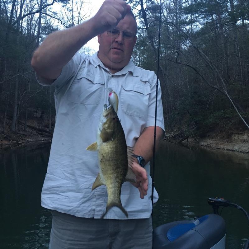 Very nice weather morning on Lake James! Caught a feisty Small Mouth Bass on like the 3rd cast. Nothing after that. !
