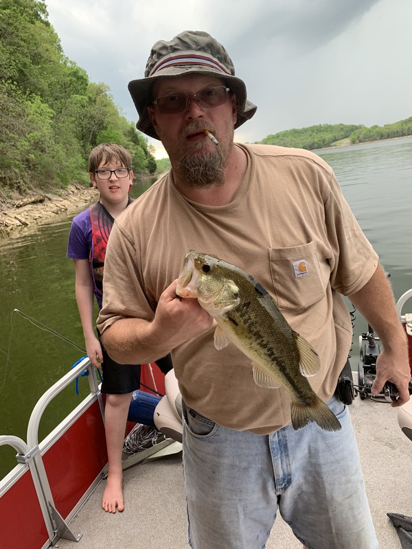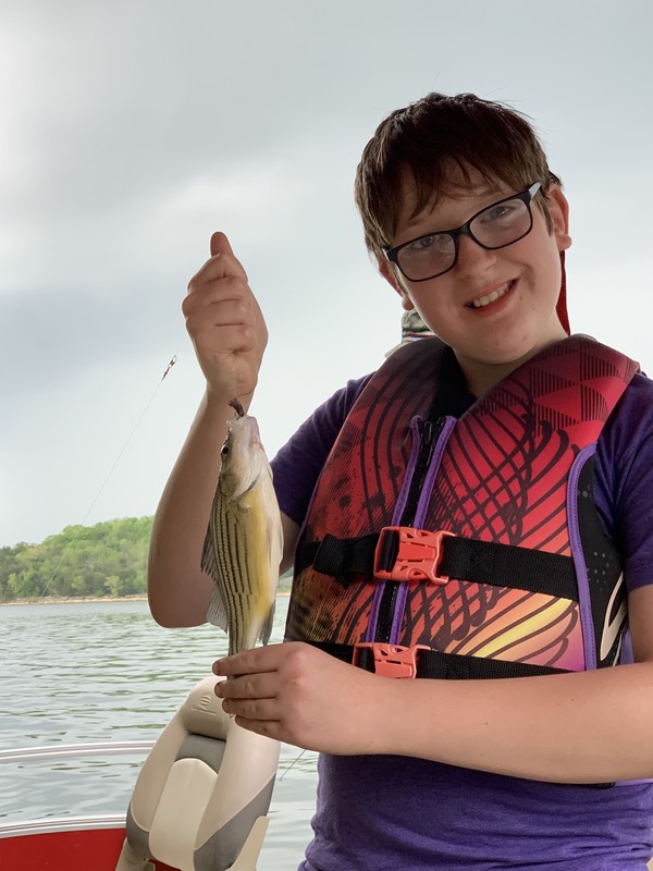 My 14 year old autistic sons first bass. He was so excited! But he said he likes catching catfish better. Lol