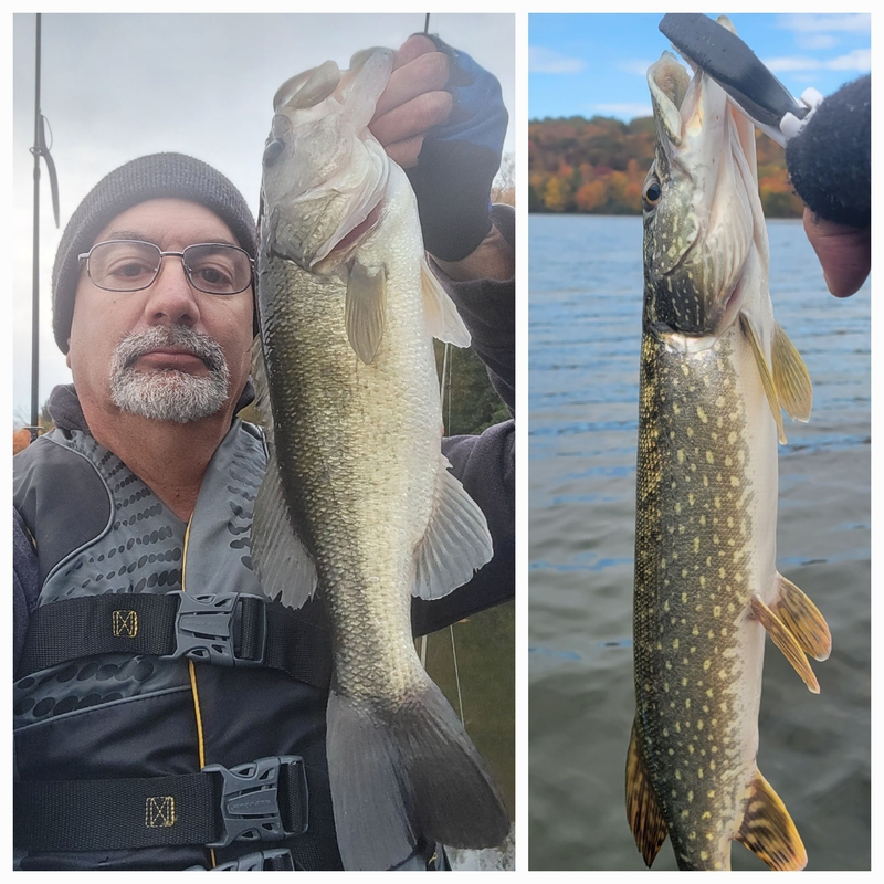 Caught 3 Bass and a small 21 inch Pike. It was a nice morning until the wind picked up.