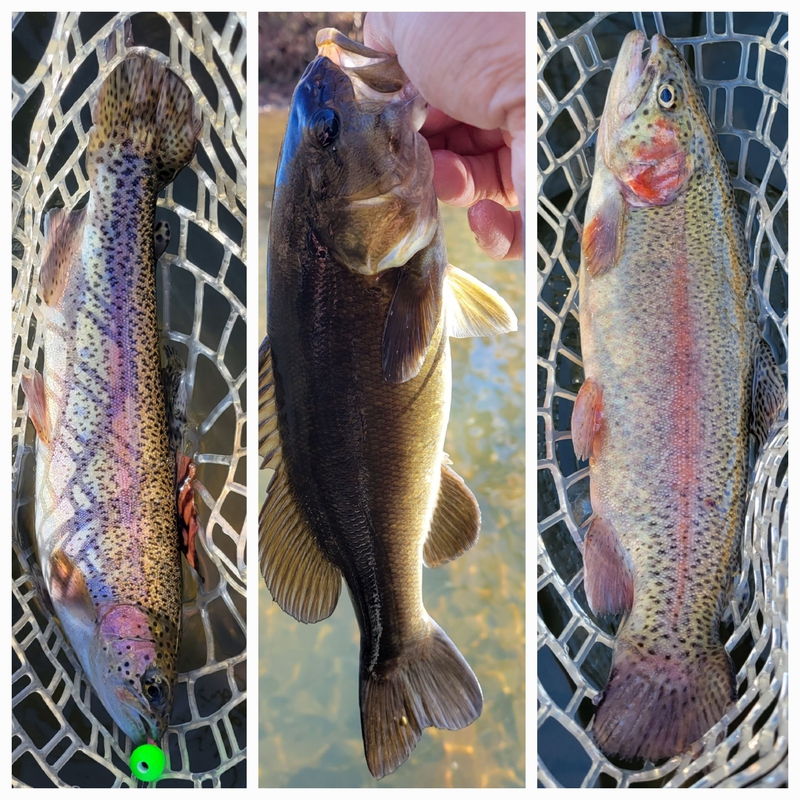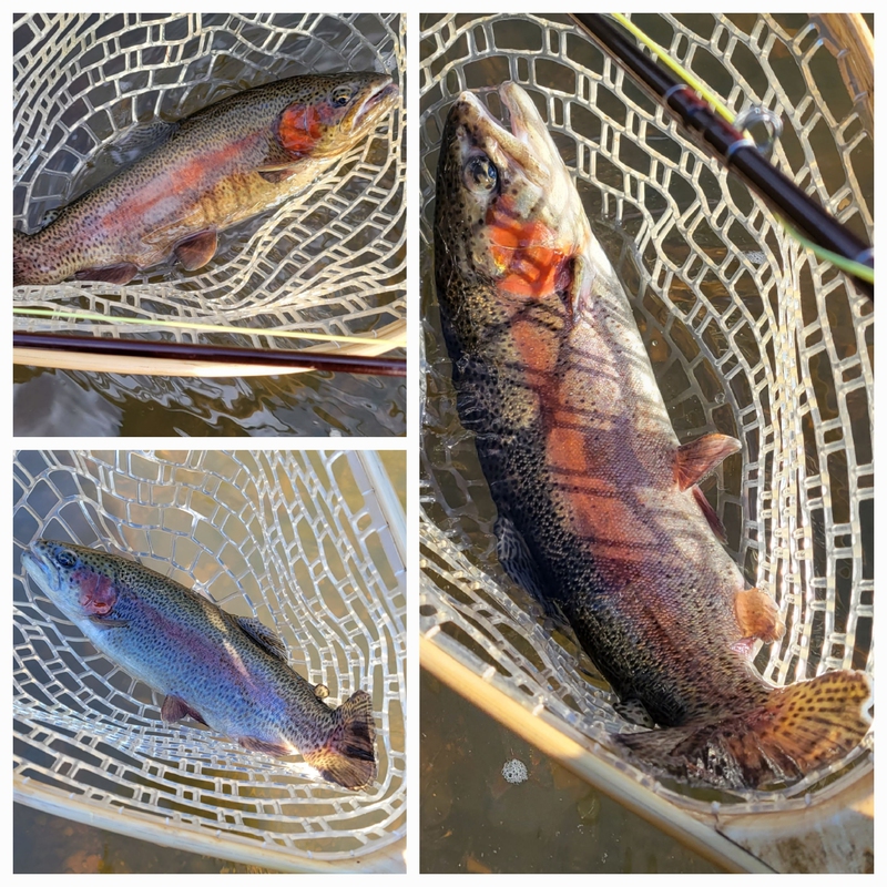 Caught 3 nice Rainbows on my new 4wt Fly setup. I didn't take the time to measure any of them, just wanted to snap a picture and get them back in the water. ...more The Trout on the right was 18-20 inches I think, great fight.