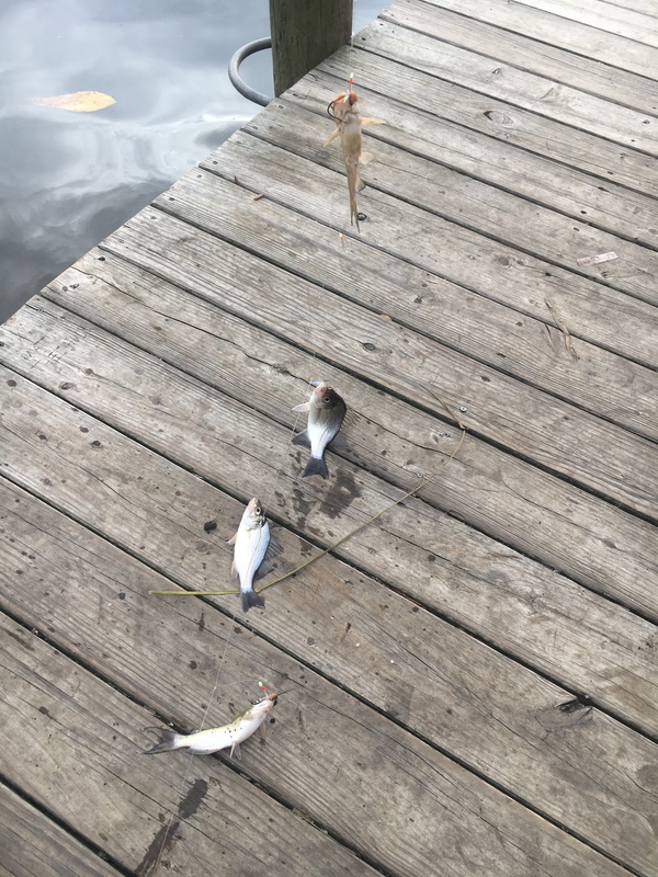 Trying to get some cut bait and got a 4’fer!! 2 small channel cat and 2 small perch