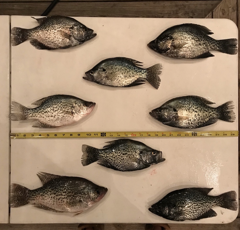Couple 12inchers and 8 keepers in about 3 hours of fishing Monday morning. All on minnows suspended in 4-8 feet.
