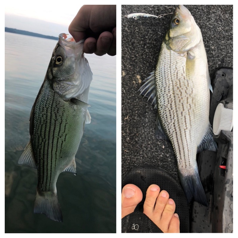 6 hybrid and 1 striper in about 30 mins this morning. All between 11-16 inches, but fun to catch.