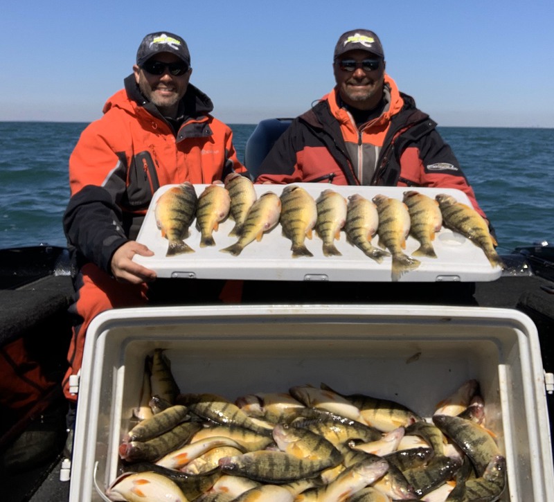 The perch bite is on in Lake Erie , a nice 2 man limit , with the biggest fish 15.5 inches and 2.6 pounds !!! 6 fish were 15β ! Yummy !!!!!