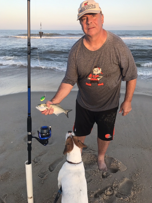 7. Baby blues hitting hard at Beach Haven LBI surf w mullet rig