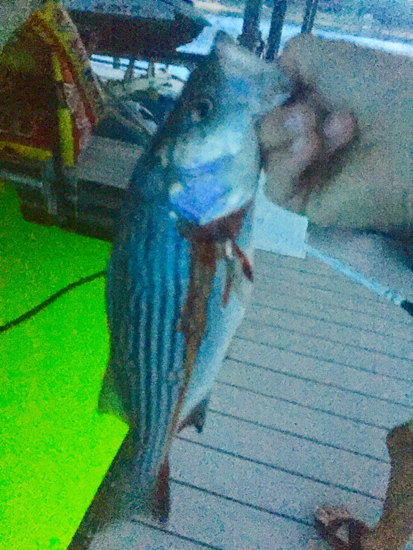 I caught my first striper!! I was using a jigging spoon under a green light! So much fun!
