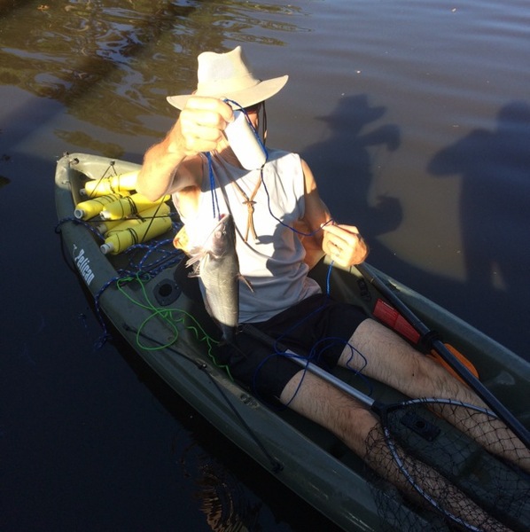 1. Threw couple jug lines last nite. Nice blue on one of em this am. Lost another trying to net it.
