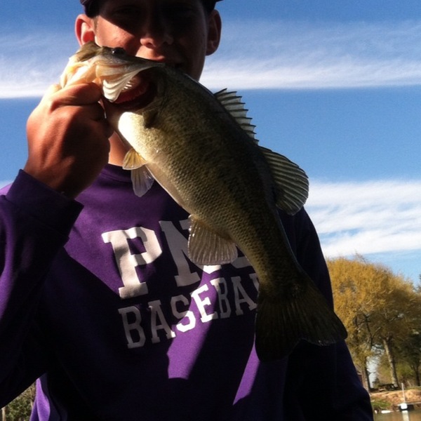 1. Details: Largemouth Bass with a watermelon red wacky