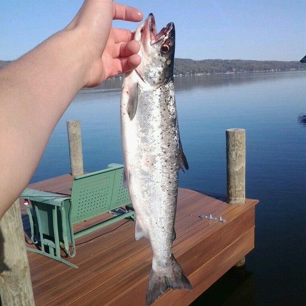 5. caught this nice salmon off a silver and blue spoon, right off the dock, on may 10th 2014