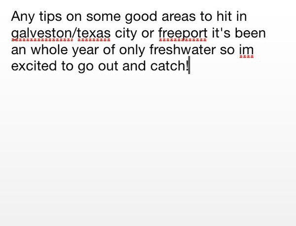 7. Any tips on some good areas to hit in galveston/texas city or freeport it's been an whole year of only freshwater so im excited to go out and catch!