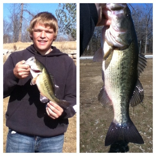 Finally got some open water fishing. Hit these 2 fish a 2lbs even and a 3lbs 4oz. Being there was ice in the pond 2 days before I think it was a pretty successful ...more trip. Blue sky no clouds 51* F