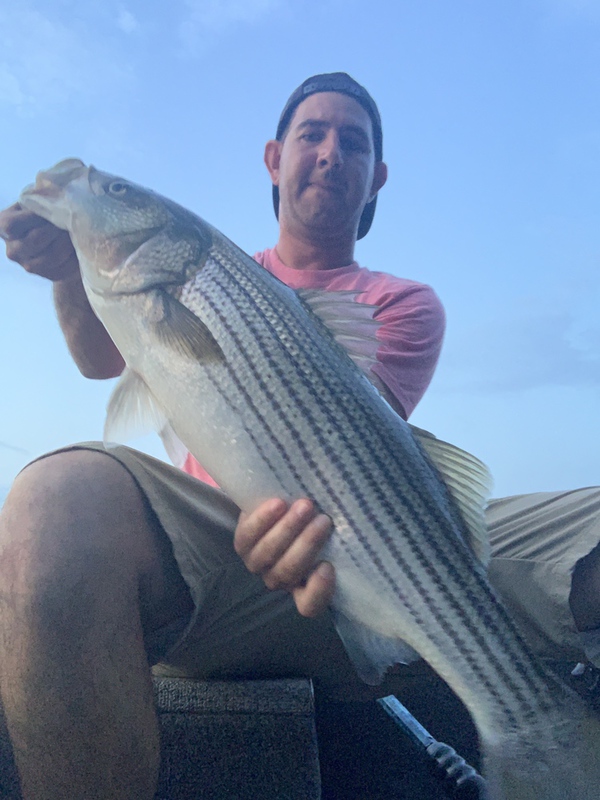 Nice stripers, all those pictures appear to be pure bred stripers rather than hybrids. I base my opinion on their long bodies and lack of broken stripes consistent ...more with actual striped bass and not hybrids. Either way, beautiful fish.